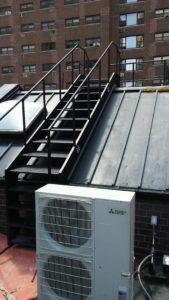 Floating steel open staircase on rooftop custom iron works, upper west side manhattan
