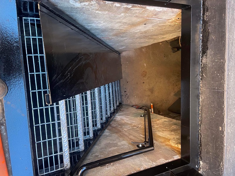 storefront basement egress-galvanized grating metal stairs-hinged steel plate folding loading ramp egress